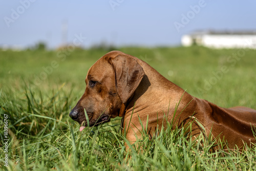 animal, beauty, breed, brown, canino, cute, dog, domestic, field, friendly, grass, green, happiness, happy, head, hound, lying, mammal, nature, pet, portrait, puppy, purebred, summer