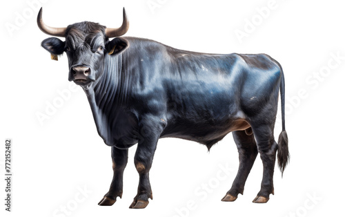 bull, horn, black, powerful, strength, cattle, farm animal, animal, ranch, farm, white, background, standing, proud, dominant, agriculture, muscular, wild, nature, beast, impressive, striking, strong, intimidating, horned, domestic, male, fierce, colours, massive, sturdy, outdoors, american, west, breeding