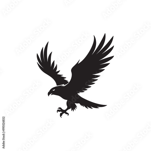 A powerful black silhouette of an eagle with its wings spread wide in full extension