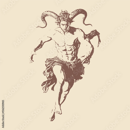 daemon, horn, man, muscular, power, running, mythology, creature, fantasy, vintage, illustration, strength, retro, engraving, male, beast, old, mythical, ancient, heroic, majestic, epic, warrior, dark, gothic, strong, dramatic, dynamic, ink, mythical, classic, artwork, myth, adventure, supernatural, rugged, athletic, character, bold, primal, spirit, detailed, wild, powerful, brute, historic, fantasy art