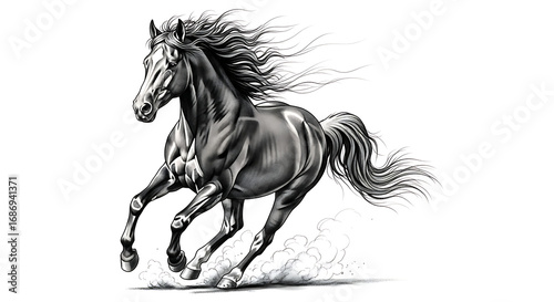horse, fast horse, equine, animal, mammal, creature, beast, wild, freedom, power, strength, speed, motion, movement, action, energy, dynamic, grace, elegance, majestic, noble, proud, spirited, wildness, untamed, natural, outdoors, nature, wind, air, dust, earth, ground, running, galloping, trotting, powerful, strong, fierce, intense, dramatic, artistic, illustration, drawing, vignetting, monochrome, black, white, grey