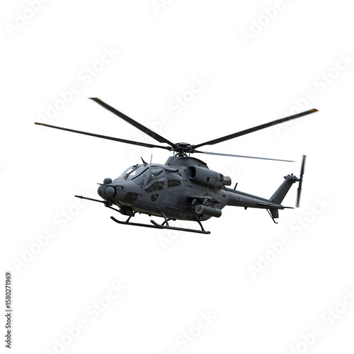 A powerful war helicopter isolated on white or transparent background. PNG format.