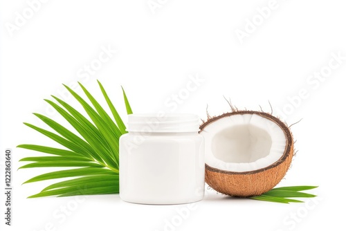coconut, jar, palm, leaf, nature, tropical, healthy, organic, beauty, skincare, fruit, fresh, white, natural, product, clean, container, exotic, summer, wellness, environment, food, decoration, lifestyle, agriculture, raw, design, environmentally friendly, moisture, cream, aroma, cosmetic, relaxation, freshness, nourishment, health, ingredient, botanical