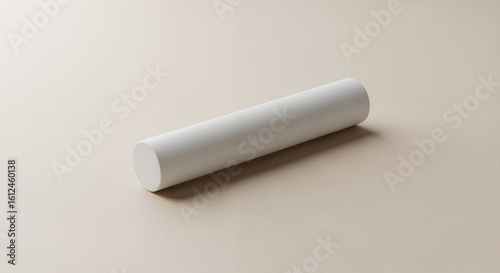 A pristine white cylinder rests gently on a light beige , showcasing its smooth texture and simple elegance.