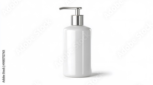 A pristine white pump bottle, ideal for showcasing beauty or personal care products.