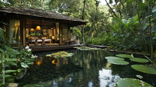 A private lagoon hidden within dense jungle foliage, perfect for peaceful retreats.