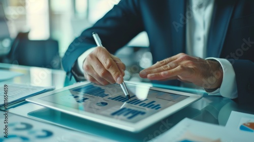 professional, suit, tablet, business, technology, corporate, finance, statistic, chart, graph, working, businessperson, businessman, analysis, digital, workspace, innovation, office, modern, executive, productivity, planning, strategy, research, report, document, paper, interactive, touch screen, organised, meeting, management, presentation, project, work, sharpened, detail
