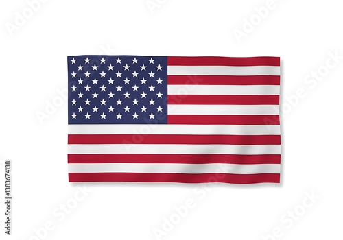 A proud display of the American flag, its stars and stripes waving with gentle folds, symbolizing freedom and national pride against a clean white background.