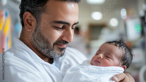 father, baby, newborn, man, hospital, tenderness, family, joy, love, children, care, gentle, bond, infant, childcare center, male, eltern, emotional, happiness, hospitality, life, nurture, diaper, moment, holding, affection, warmth, clinical, fatherhood, baby, birth, smile, cradle, caregiver, connection, fatherhood, groomed, cherish, tender
