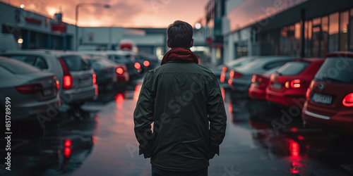a psychological thriller in which the troubled protagonist becomes obsessed with a mysterious figure lurking among the cars parked in front of a car dealership.