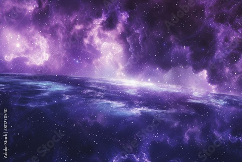 A purple and blue space teeming with stars and nebulae, creating a mesmerizing celestial display, A mesmerizing purple nebula stretching across the horizon