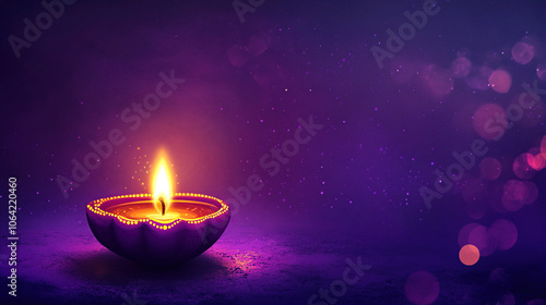 A purple background with a glowing diya lamp, symbolizing the lights of joy and prosperity during the Diwali festival celebration