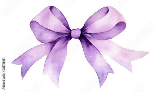A purple bow watercolor on a white background a purple Ribbon,generation AI