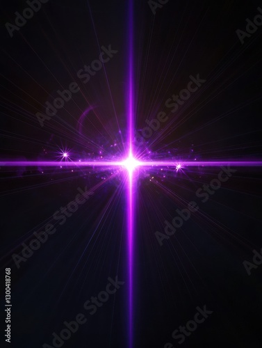 A purple laser beam on a black background, with a lens flare effect and rays of light,