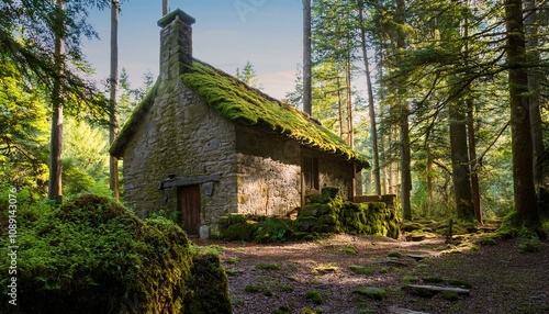A Quiet Retreat: Moss-Covered Cottage Surrounded by Majestic Trees