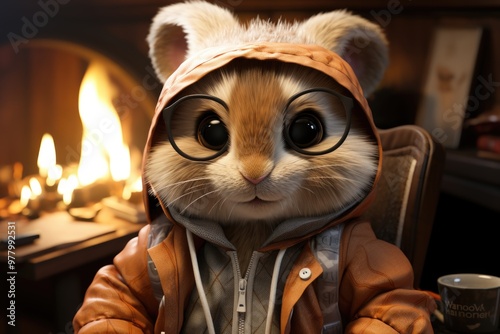 A rabbit with glasses and a shirt that says 'I love you', generative IA