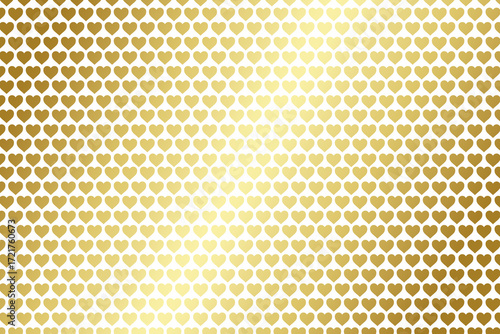 A radiant background pattern of tiny golden hearts, featuring a shiny metallic gradient. This PNG on transparent background is perfect for love-themed designs, social media graphics, and elegant proje