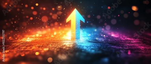A radiant multicolored upward arrow, symbolizing success, progress, and growth, ideal for motivational business presentations