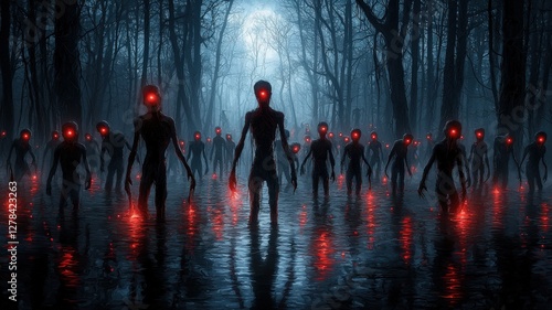 swamp, radioactive, creature, toxic, water, glowing, fungal, night, eerie, environment, flora, fauna, landscape, mystical, dark, decay, wildlife, biodiversity, survival, adventure, pollution, isolation, underground, illumination, hazard, high-coloured, haunting, surreal, fantasy, ecosystem, exploration, danger, shadow, mysterious, nocturnal, vibrant, science fiction, nature, grotesque, organic, atmosphere, transformation, alien, contamination