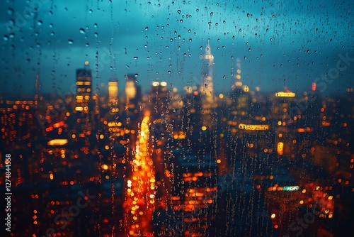 night, urban, raindrop, bokeh, city lights, dusk, texture, reflections, moody, vibrant, colourful, blurred, atmospheric, cosy, street light, metropolitan, skyscraper, night photography, evening, rainy weather, city life, landscape, weather