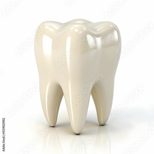 A realistic 3D render of a clean, healthy tooth isolated on a white background, symbolizing dental care, hygiene, and oral health.