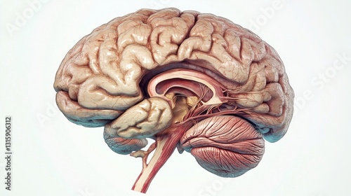 brain, anatomy, detailed, realistic, neuroscience, cerebellum, cognition, intelligence, nerve, education, medicals, health, science, closeup, physiology, biology, structure, neurology, organ, dissection, learning, human, academic, study, cross, section, worked, cognition, research, thinking, medicine, illustration, surgery, conceptual, precision, scientific, body, perspective, organic, neural, visualisation