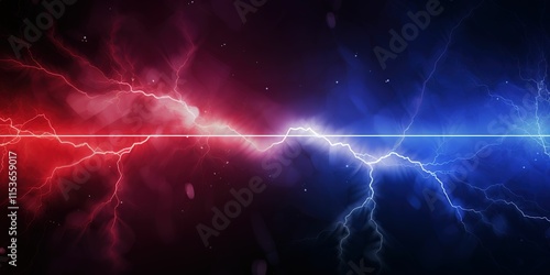 A red and blue background with a blue and red lightning bolt