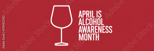 A red background featuring a white outline of a wine glass accompanied by the text "APRIL IS ALCOHOL AWARENESS MONTH," emphasizing advocacy for responsible alcohol use.