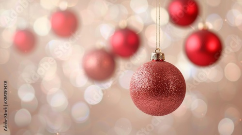 red, christmas, ball, holiday, decorative, new, bright, celebrate, year, festive, background, tree, winter, season, shiny, gold, ornament, card, green, december, light, bokeh, white, design, merry, bauble, glistering, happy, blur, snow, sphere, tree branch, closeup, fir, spruce, pine, border, gift, wooden, wood
