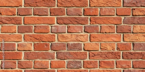 A red brick wall with subtle color variations and a consistent pattern of mortar joints
