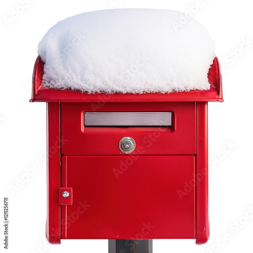 red, mailbox, snow, top, sitting, white, background, mail, post, box, metal, letter, letterbox, postbox, postal, communication, delivery, old, vintage, retro, wall, send, symbol, traditional, house, container, object, street, correspondence, exterior