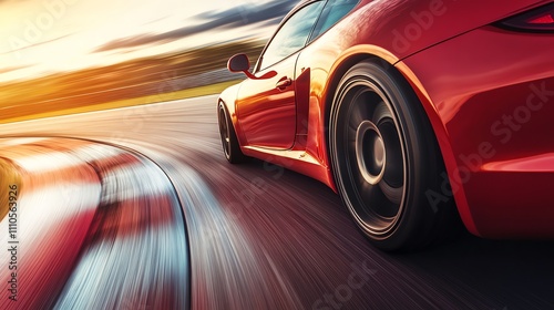car, sports car, red, race, track, speed, fast, driving, motion, blur, dynamic, powerful, vehicle, automobile, competition, sunset