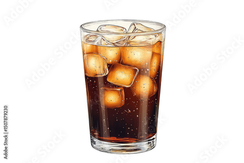 A refreshing glass of cola with ice cubes on a black background perfect for a hot summer day drink