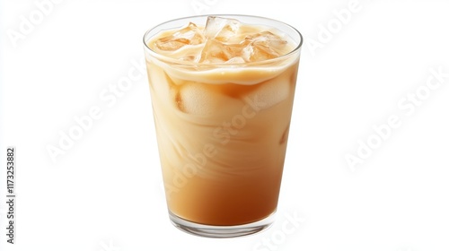 A refreshing glass of Thai iced tea with a swirl of creamy milk and ice cubes, showcasing the perfect blend of black tea, sugar, and milk.
