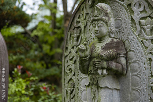 A religious stone statue of Mahasthamaprapta at Japanese buddhism temple