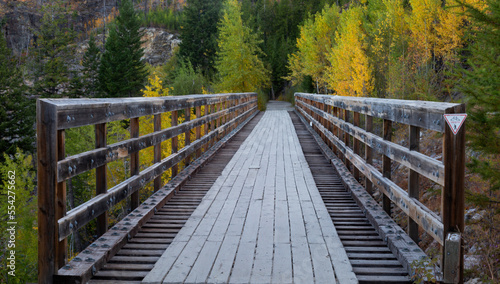 canada, restored, british columbia, kelowna, horizontal, transportation, outdoors, day, trail, bridge, structure, landmark, history, wooden, tour tourism, balustrade, restoration, crossing, seasonal, local landmark, forest, attraction, autumn, destination, travel, landscape, tree, mountain, color image, tourist attraction, travel destination, built structure, no people