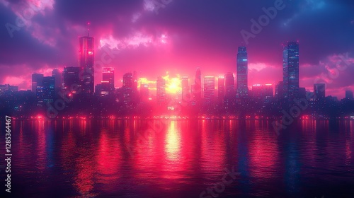 city landscape, neon light, dynamic, vibrant, scene, city, urban, architecture, building, technology, science fiction, science fiction, futuristic, abstract, design, graphic, night, factory, industry, skyline, oil, refinery, sky, plant, sunset, water, industrial, river, power, tower, pollution, light, business, gas, shanghai, energy