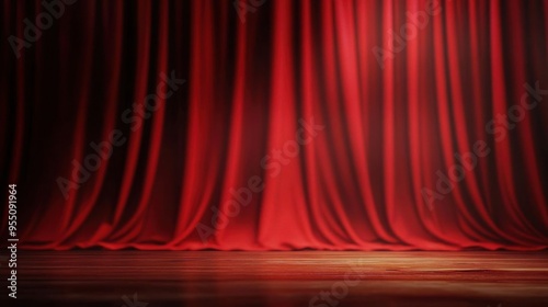 A rich red curtain drapes elegantly on a stage, creating an atmosphere of anticipation and allure for an upcoming performance.