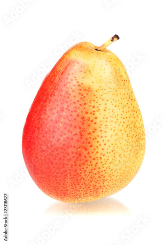 A ripe red and yellow pear
