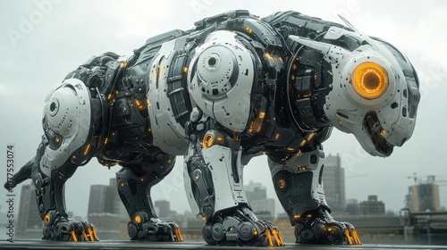 robot, animal, technology, design, futuristic, machinery, metal, cybernetic, innovation, engineering, creature, urban, architecture, city, sleek, dynamic, glowing, orange, power, strength, detail, structure, aesthetic, modern, sculpture, art, imagination, creativity, felino, mechanical, advanced, vision, form, shape, realism, concept, synthetic, environment, habitat, landscape, atmosphere, urbanism, robotic, aesthetic, functionality, performance, intelligence, evolution, nature