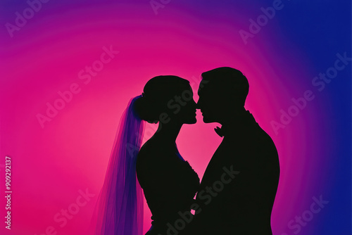 bride, groom, silhouette, embracing, romantic, love, connection, pink, blue, gradient, tender, moment, colours, background, wedding, couple, art, ceremony, affection, marriage, human relationships, abstract, style, photo, concept, emotion, intimacy, romance, artistic, contemporary, photograph, togetherness, colourful, wedding day, visual, heartfelt, photo, hugs, vibrant