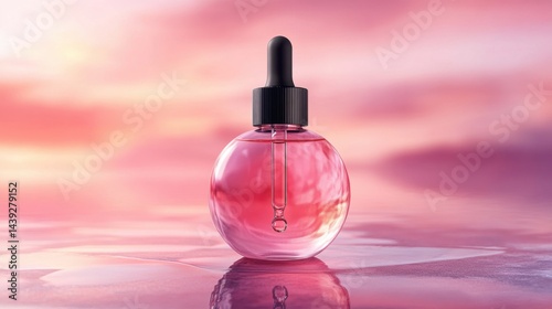 A round scented oil bottle mockup with a black dropper lid, soft gradients in the background