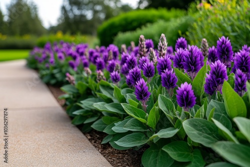 row, plant, lining, garden, path, their, tall, flower, creating, colourful, border