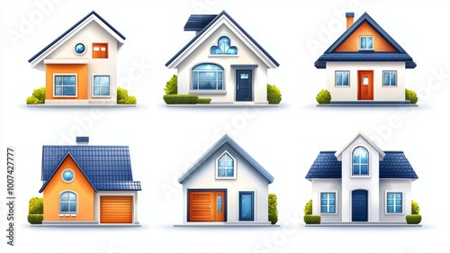 row, house, different, colours, style, white, blue, accent, orange, size, shape, building, illustration, architecture, home, apartment, residential, estate, property, design, icon, construction, roof, set, city, town, urban, exterior, window, symbol, door, concept, real, flat, residence, front, modern, business, tree, bungalow, cartoon, villa, buy, rent, small, street, element, collection