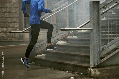 running, jogging, fitness, athletic, training, urban, snow, moody, solo, step, bad weather