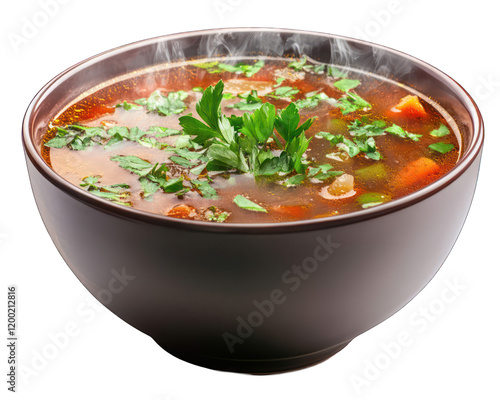 A Rustic Bowl of Hearty Winter Soup with Fresh Herbs Sprinkled on Top