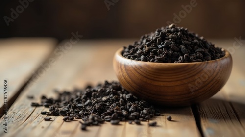 seed, bowl, wooden, rustic, dark, earthy, tone, scattered, surface, weathered, texture, grain, natural, organic, spice, ingredient, culinary, aroma, fragrant, healthy, wholesome, food