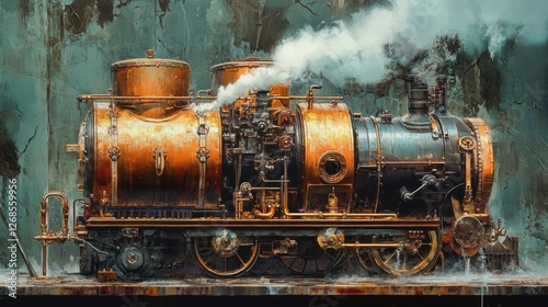 steam, locomotive, train, engine, copper, rust-eaten, metal, wheel, track, smoke, vintage, antique, retro, old, grunge, industrial, machinery, technology, transport, travel, journey, adventure, history, heritage, mechanic, gear, pipe, boiler, steam engine, transportation, classic, aged, weathered, dark, background, texture, art, design, illustration, graphic, image, picture, photo, fantasy, fiction, mechanism, power, energy
