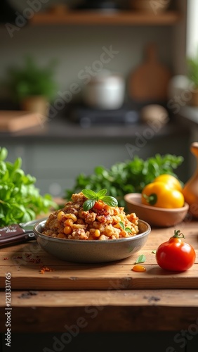 A savory and satisfying dish featuring chickpeas, tomatoes, and fresh basil