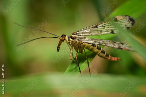 fly, insect, wing, macro, animal, green, closeup, scorpio, wildlife, leaf, entomology, summer, bug, plant, nature, wild, detail, invertebrate, antennae, small, fauna, creature, garden, background, leg, proboscis, spring, high-coloured, head, male, feeler, danger, flying, close, mosquito, colourful, grass, tail, common, body, vibrant, wilderness, biology, predator, forest, zoology, stinger, poison, hexapod